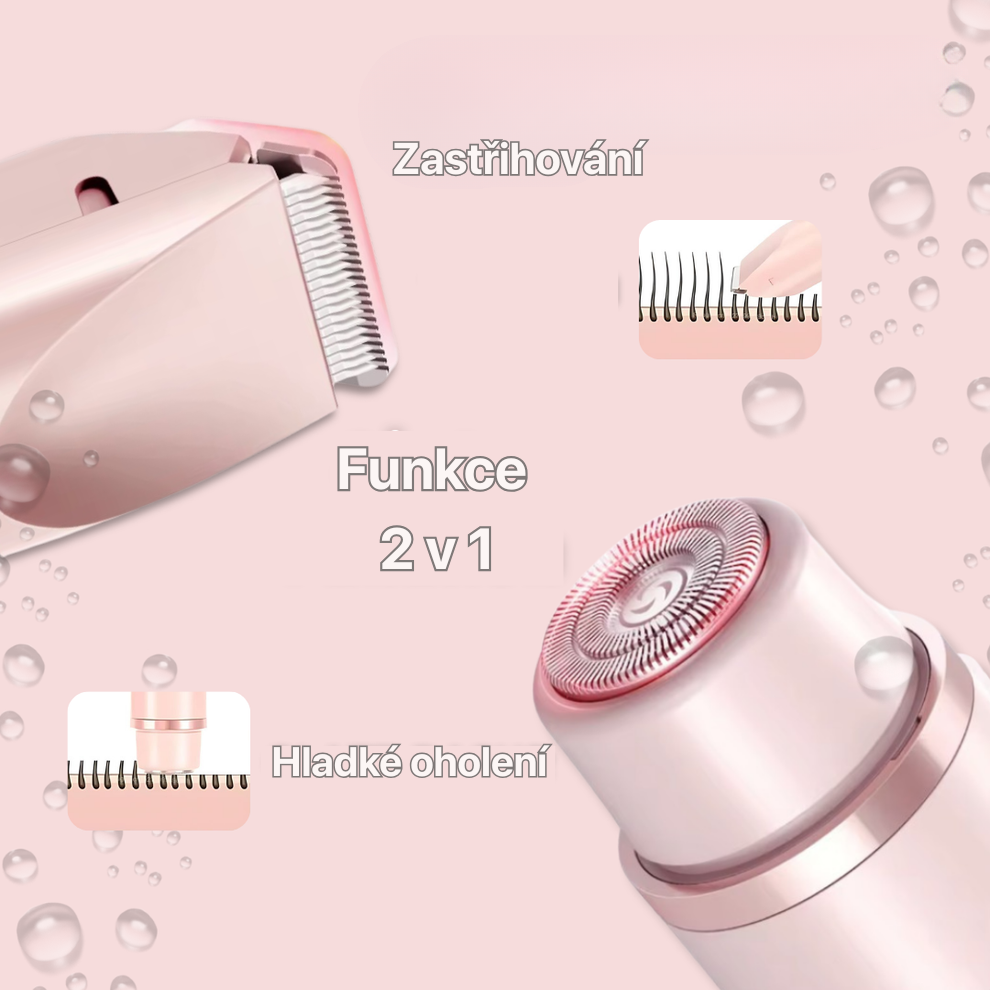 Holicí strojek má oboustranný design – jedna strana zastřihuje a odstraňuje chloupky, druhá vyhlazuje jemné chloupky a dosahuje na obtížná místa pro jemnou, bezchybnou a dokonale hladkou pokožku.